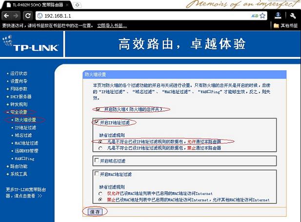 2.接下來打開“安全設(shè)置-- >IP地址過濾”配置需要禁止的UDP端口,具體配置如下圖所示: