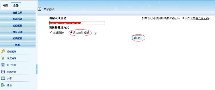 1)選擇“通過(guò)郵件激活”,輸入激活碼后點(diǎn)擊“確認(rèn)”按鈕。