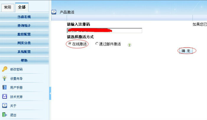 2)選擇“在線激活”,輸入激活碼后點(diǎn)擊“確定”按鈕。