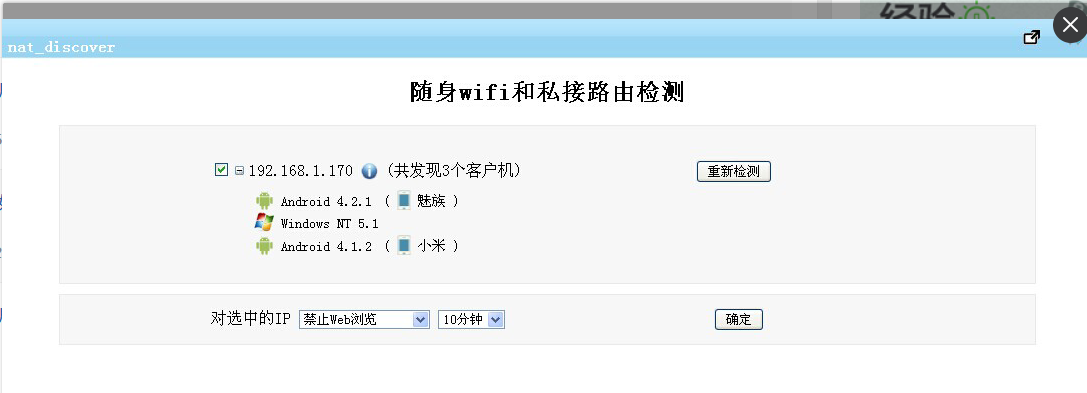 2.不管是局域網(wǎng)內(nèi)的無線路由,還是私接路由或者隨身wifi插件管理里面,不但可以檢測(cè)哪些電腦接了隨身wifi,這些隨身wifi下有幾個(gè)設(shè)備,具體手機(jī)系統(tǒng),手機(jī)型號(hào)都可以查看到
