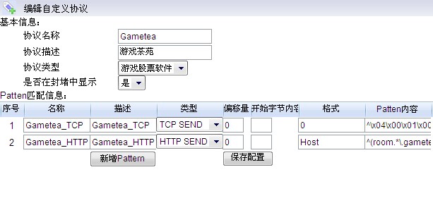 1.1 在“系統(tǒng)配置->自定義協(xié)議”中點(diǎn)擊“ 新增自定義協(xié)議”增加一個(gè)自定義協(xié)議,命名為Gametea,協(xié)議類型選擇“游戲股票軟件”,如下圖所示: