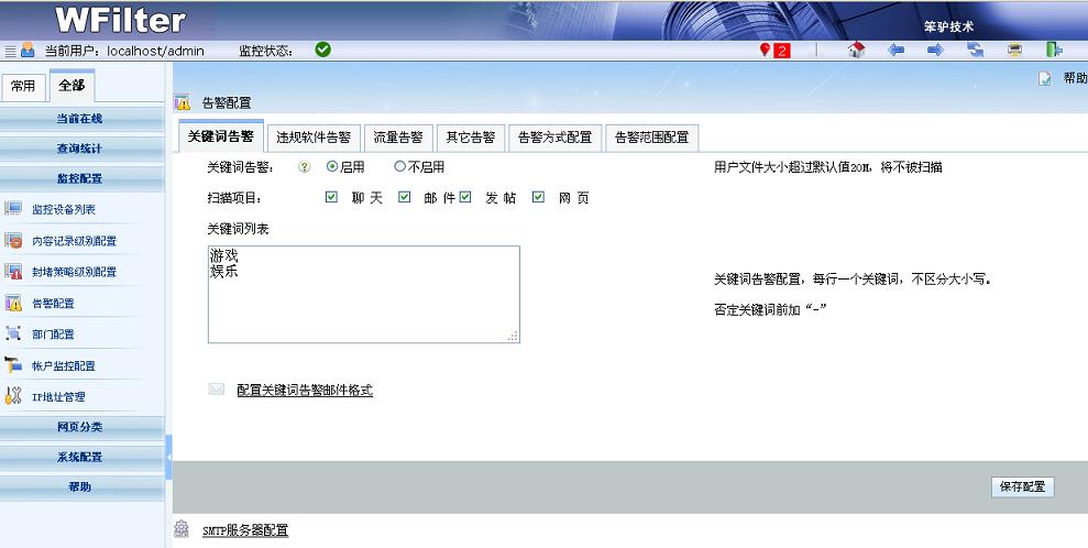 - 可以對(duì)郵件內(nèi)容設(shè)置關(guān)鍵詞告警。