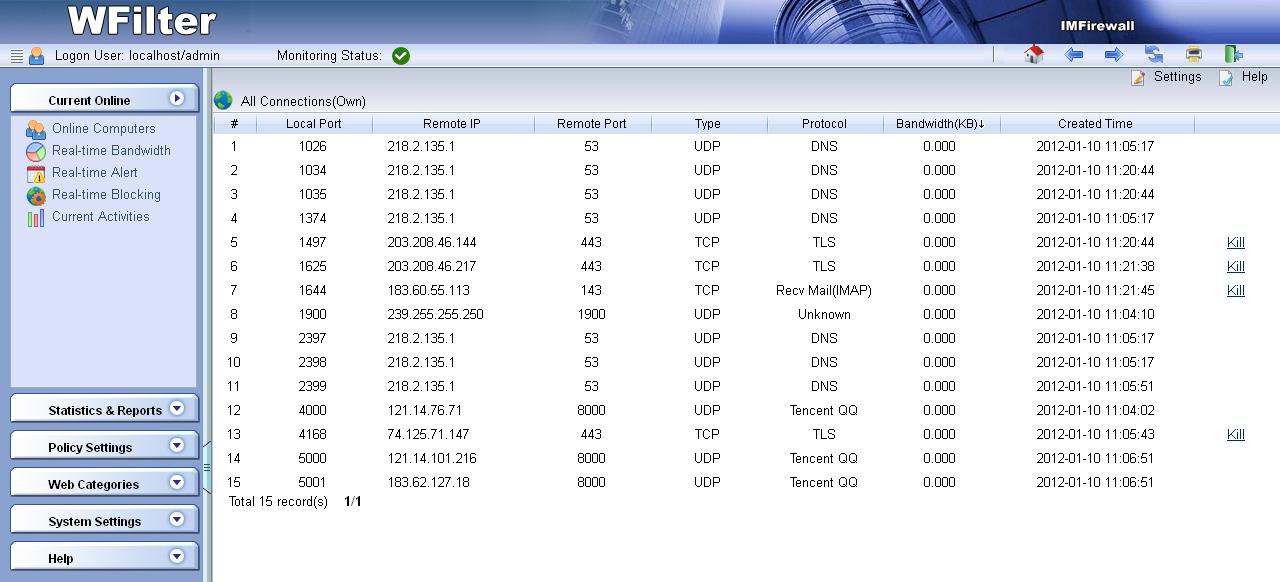 Home /  WFilter Screenshots - Bandwidth monitoring