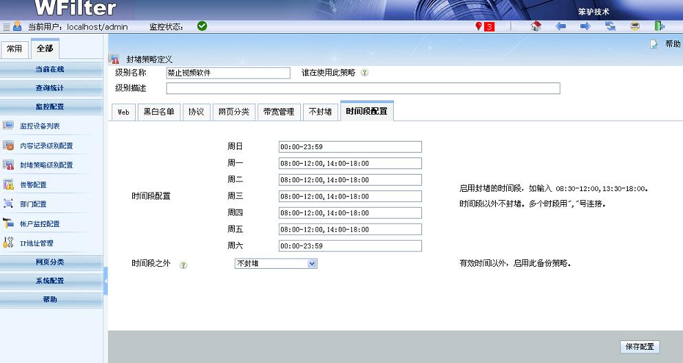 - 支持時(shí)間段配置,可以在工作時(shí)間和非工作時(shí)間采用不同的上網(wǎng)策略。