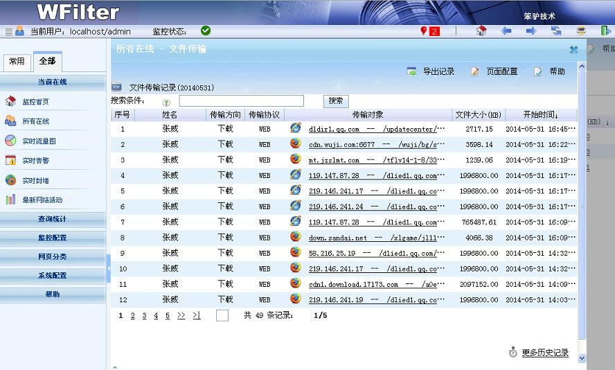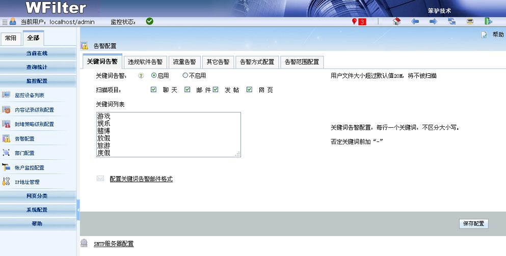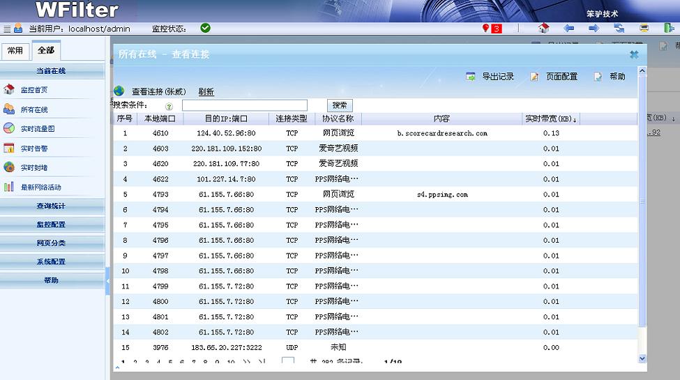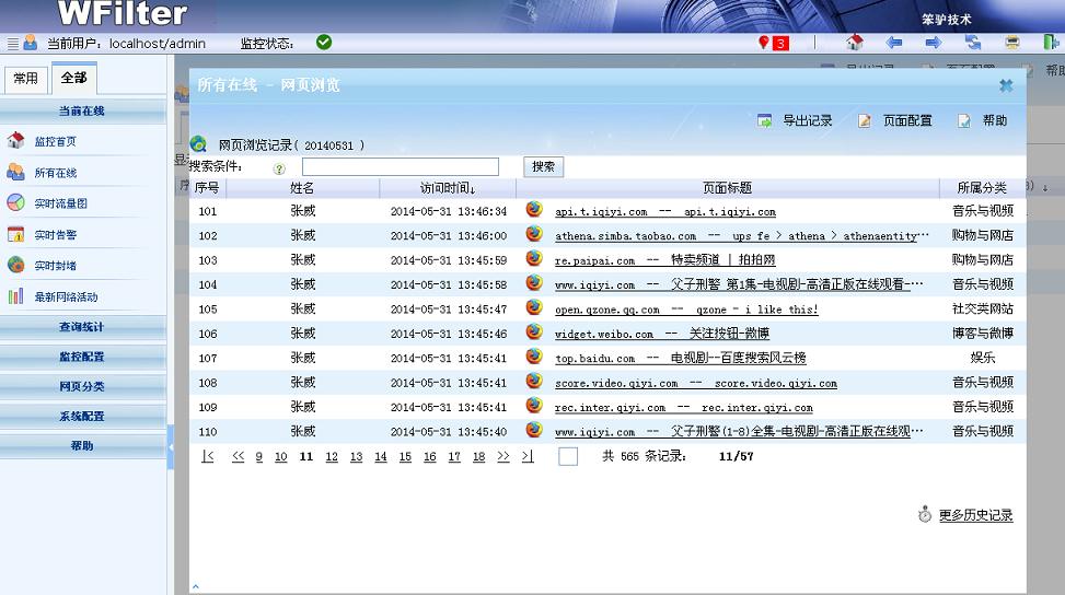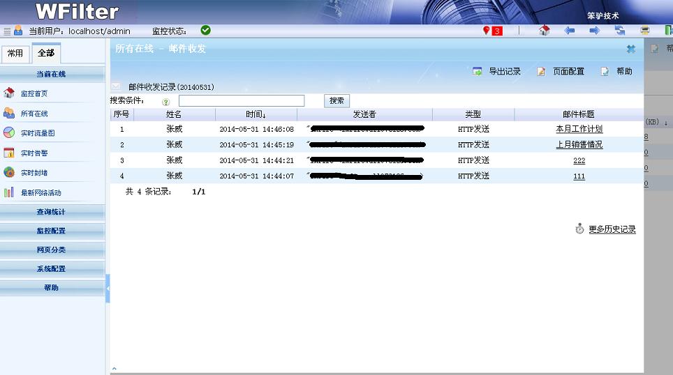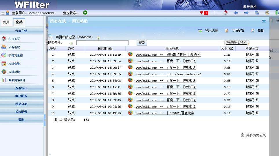 WFilter局域網(wǎng)上網(wǎng)內(nèi)容監(jiān)控記錄功能