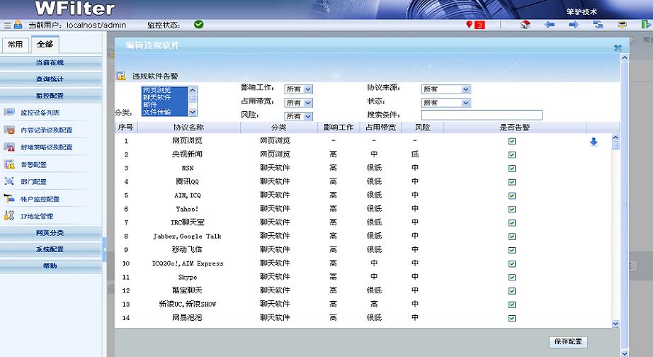 - 可以為多種協(xié)議設(shè)置違規(guī)軟件告警。