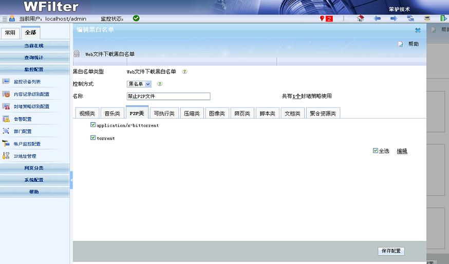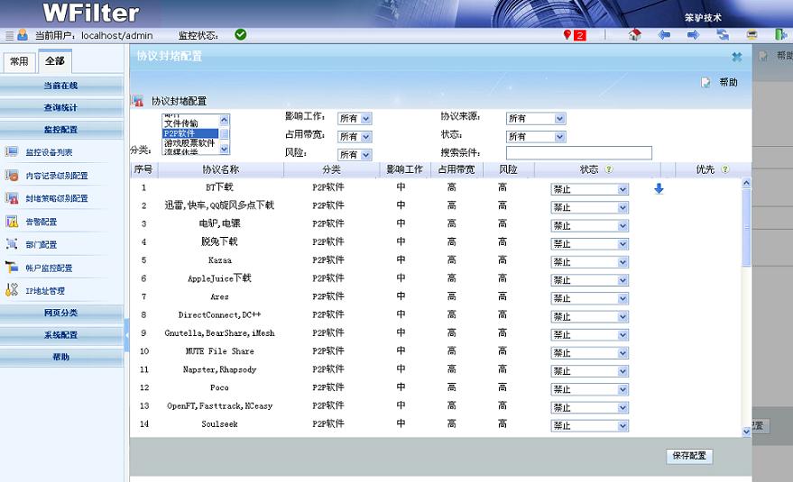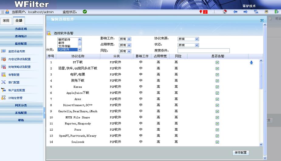 - 可以配置策略來禁止各類P2P軟件。