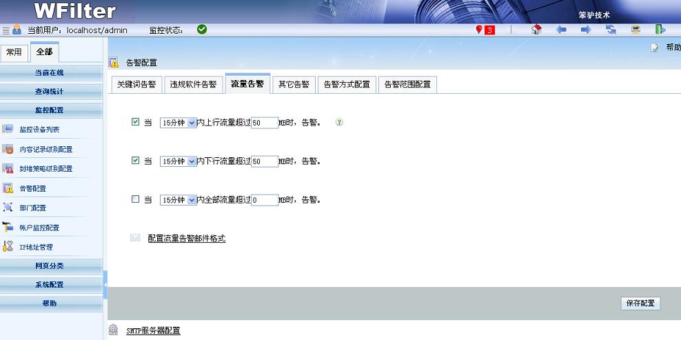 WFilter(超級(jí)嗅探狗)可以在局域網(wǎng)內(nèi)禁止P2P下載、屏蔽迅雷下載、限制下載文件的類型和大小,從而保障企業(yè)的帶寬資源。