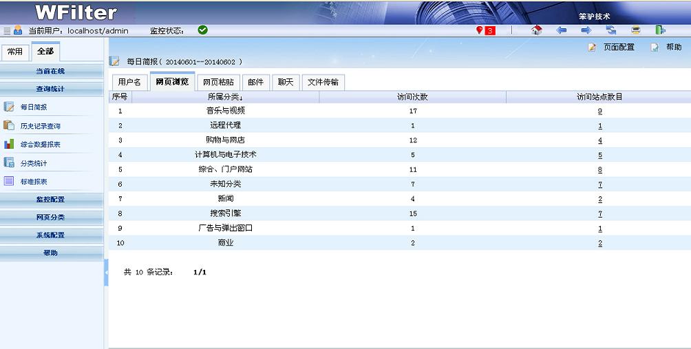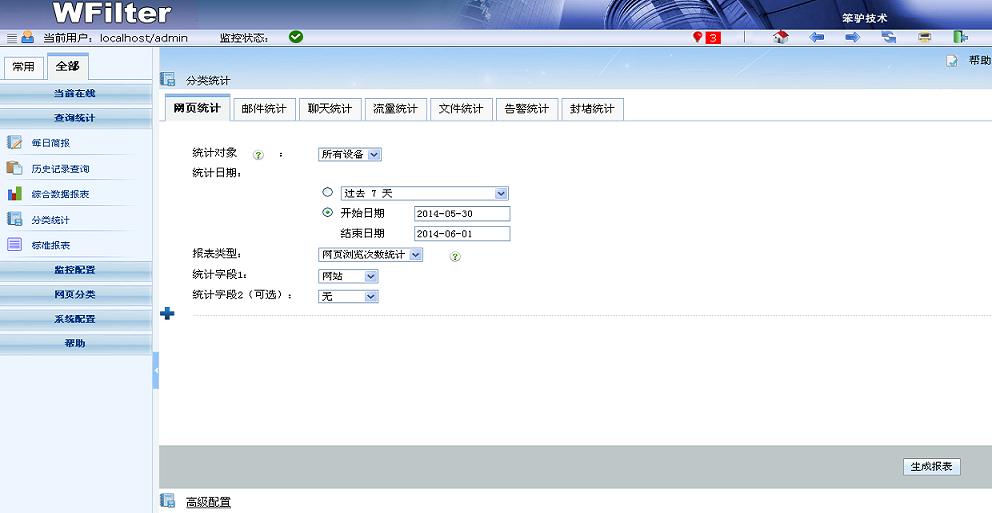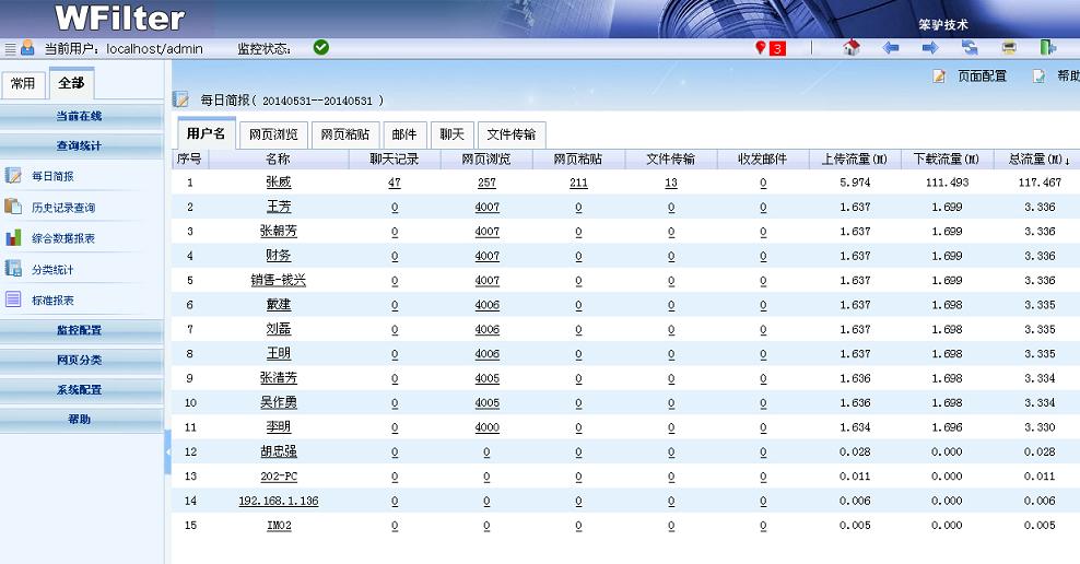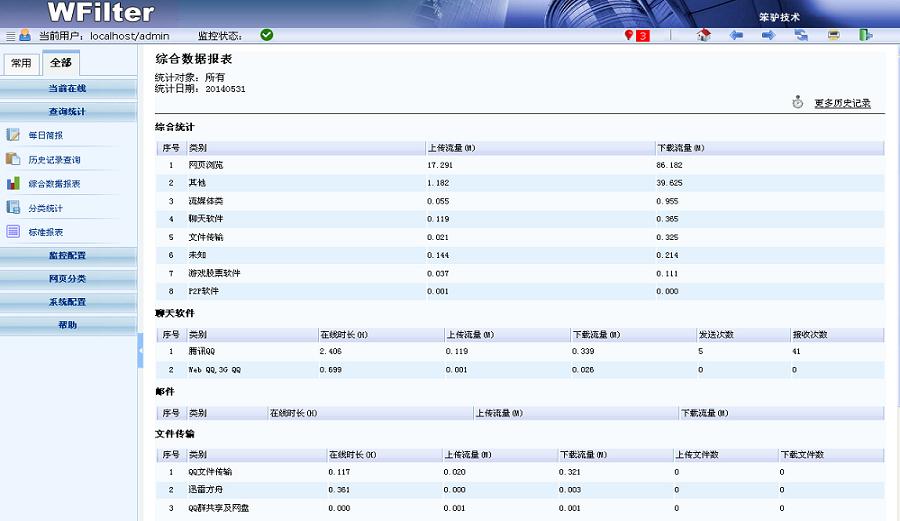 - 各種統(tǒng)計(jì)報(bào)表:網(wǎng)頁統(tǒng)計(jì)、郵件統(tǒng)計(jì)、聊天統(tǒng)計(jì)、流量統(tǒng)計(jì)等。